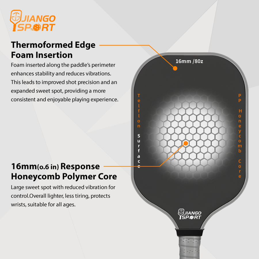 - JiangoSport's Pro Hollow T700 Series Pickleball Paddle is the New Generation Pickleball Racket. Chinese Design Engineered to provide more power/torque, spin and control than ever before with an industry-shifting unibody racket construction, unparalleled build quality and elite performance. Superior racquet feel, clinical movement for shaping the ball for tennis grade angles and unparalleled power at the back with control at the NVZ and tennis grade top spin. Experience play like never before. Before anyone else.