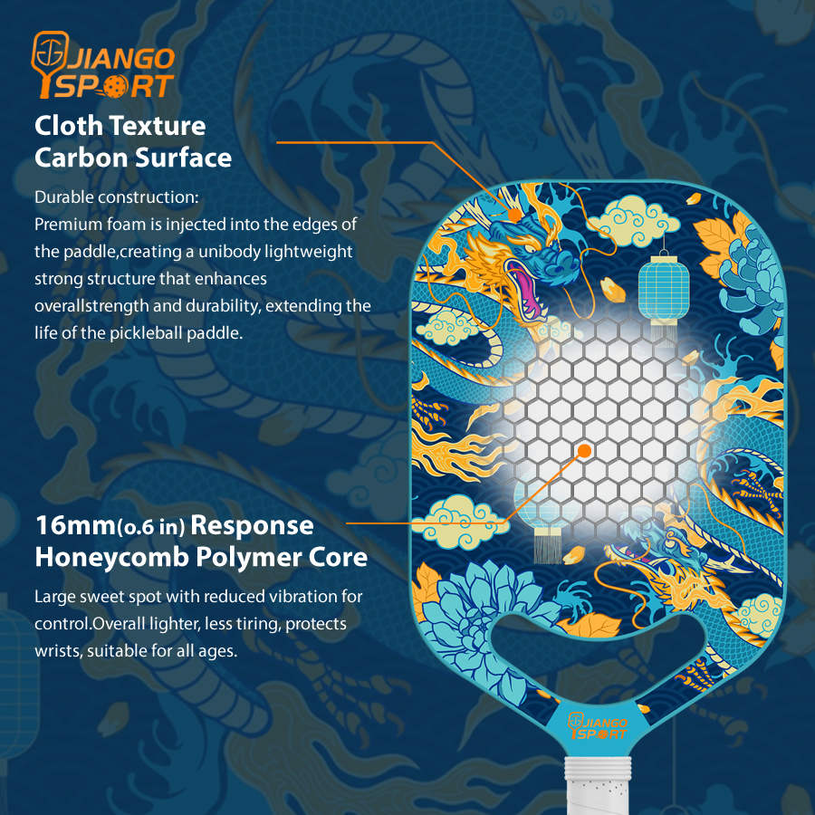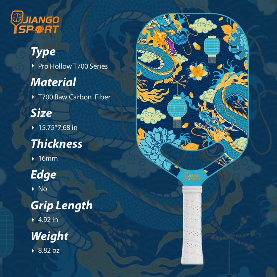 - JiangoSport's Pro Hollow T700 Series Pickleball Paddle is the New Generation Pickleball Racket. Chinese Design Engineered to provide more power/torque, spin and control than ever before with an industry-shifting unibody racket construction, unparalleled build quality and elite performance. Superior racquet feel, clinical movement for shaping the ball for tennis grade angles and unparalleled power at the back with control at the NVZ and tennis grade top spin. Experience play like never before. Before anyone else.